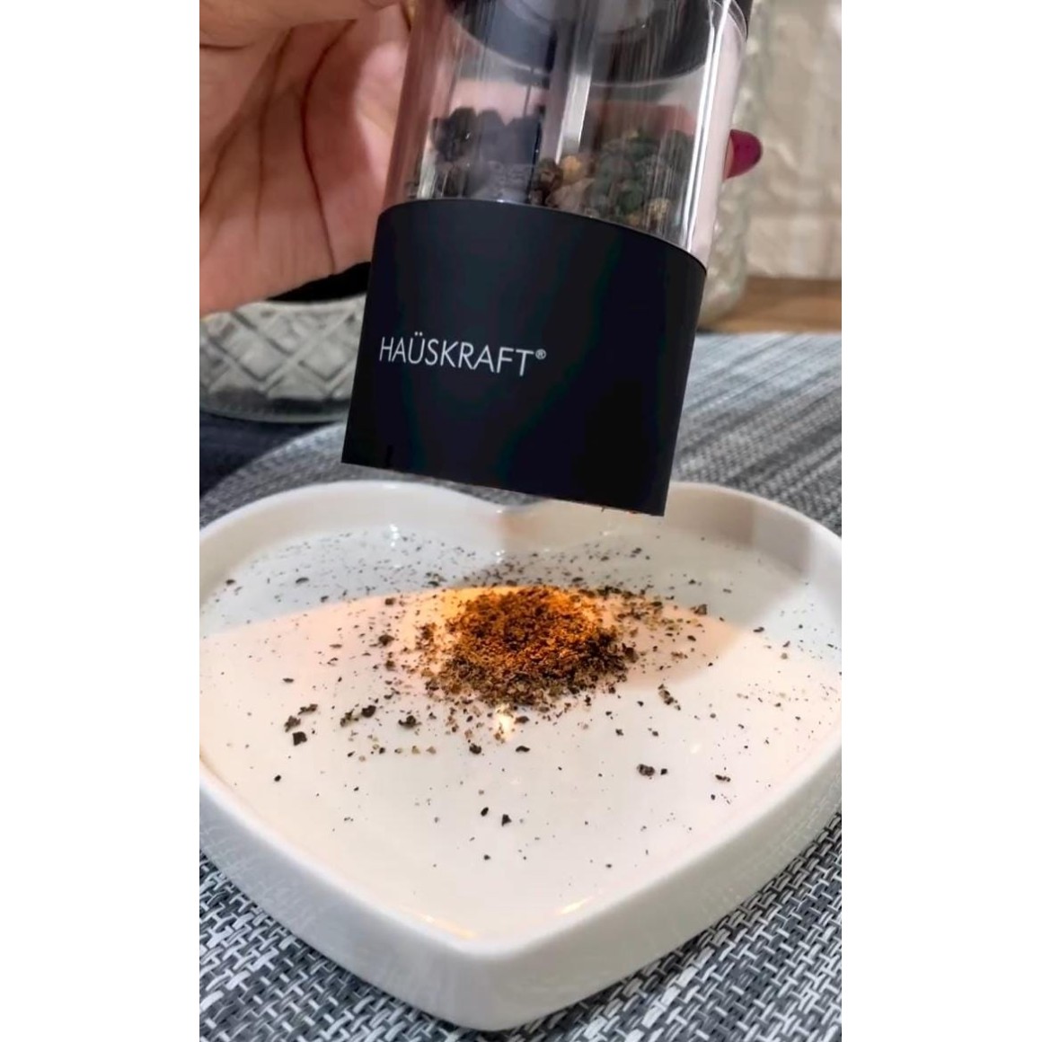 - Retire com cuidado a parte superior do produto e coloque as pilhas AA. - Adicione no compartimento os temperos de sua preferência. - Regule a engrenagem que fica localizada na parte inferior do produto para definir o grau de moagem. - Posicione o moedor no alimento e aperte o botão para acionar a moagem.
