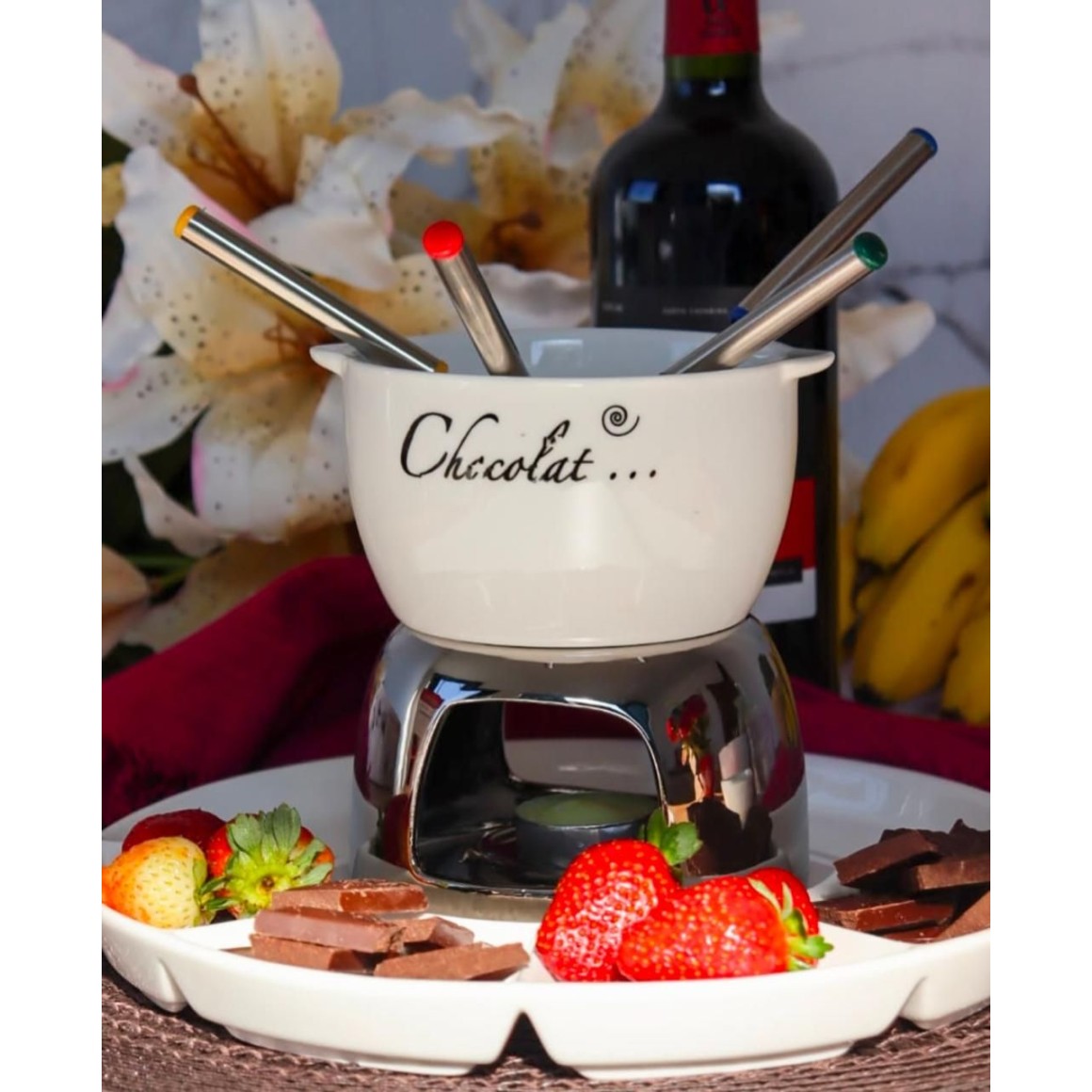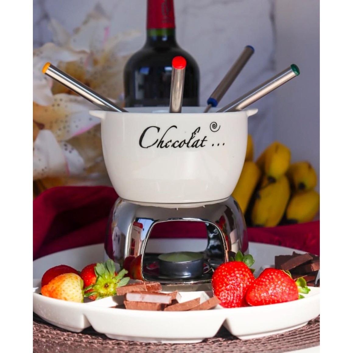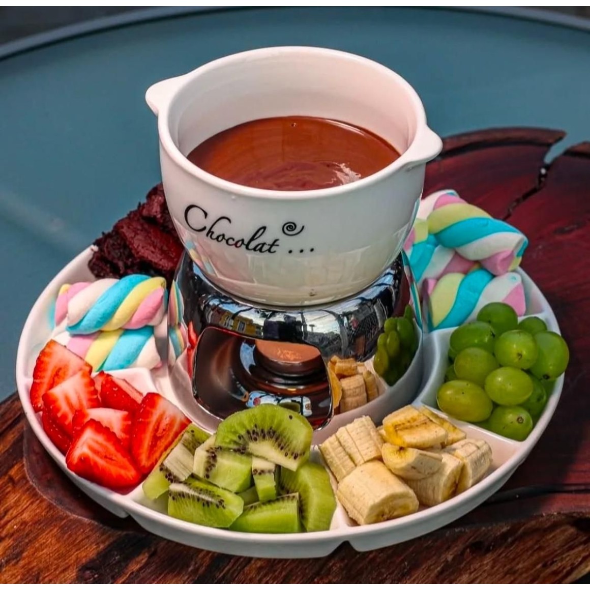 Este conjunto acompanha uma petisqueira, perfeito para uma experiência deliciosa e completa de fondue e petiscos. É perfeito para presentear alguém especial, criar uma experiência personalizada para eventos ou até mesmo para estabelecer sua própria marca de fondue personalizado. Serve até 4 pessoas, possui um design clássico e sofisticado, ideal para ocasiões especiais, experiências deliciosas e únicas.