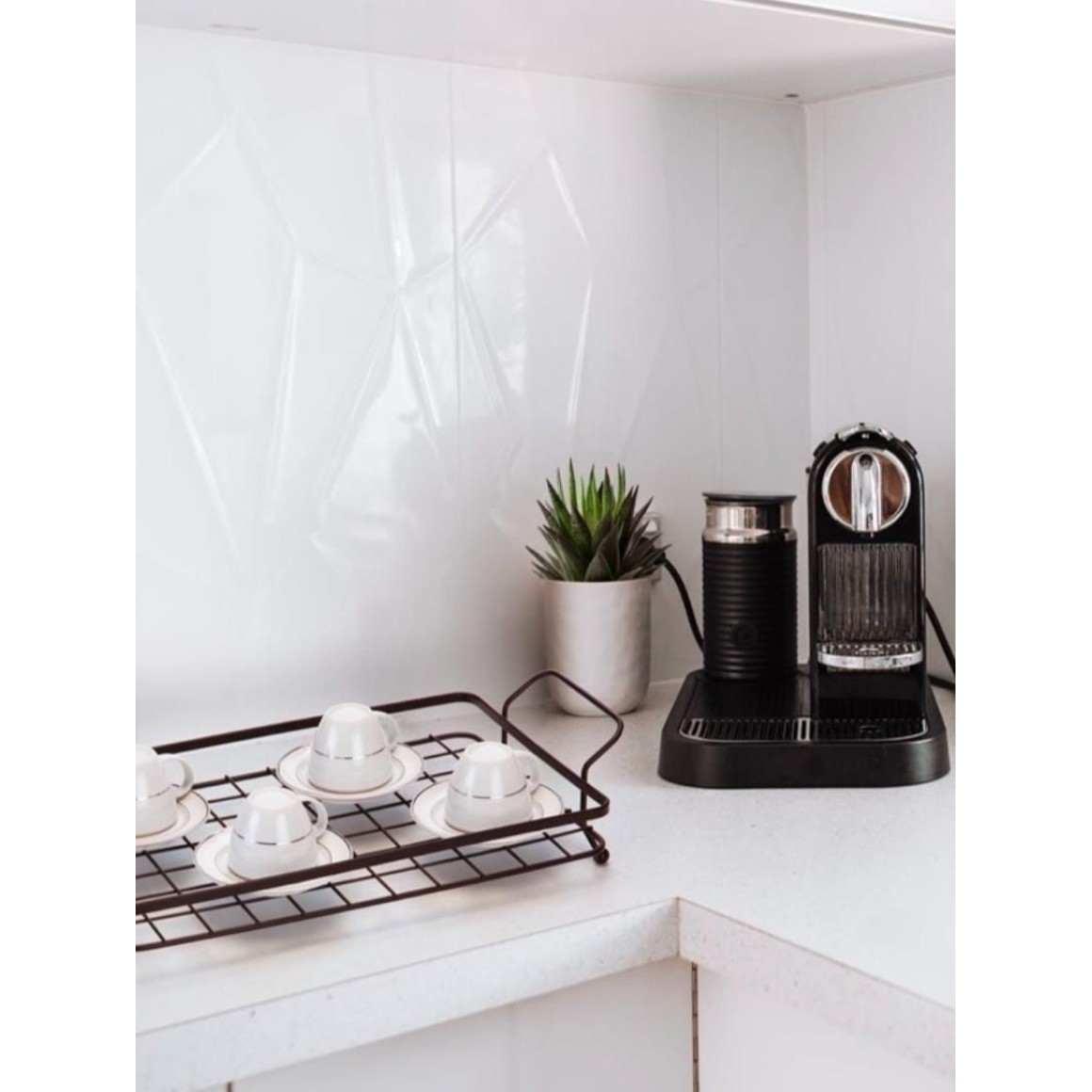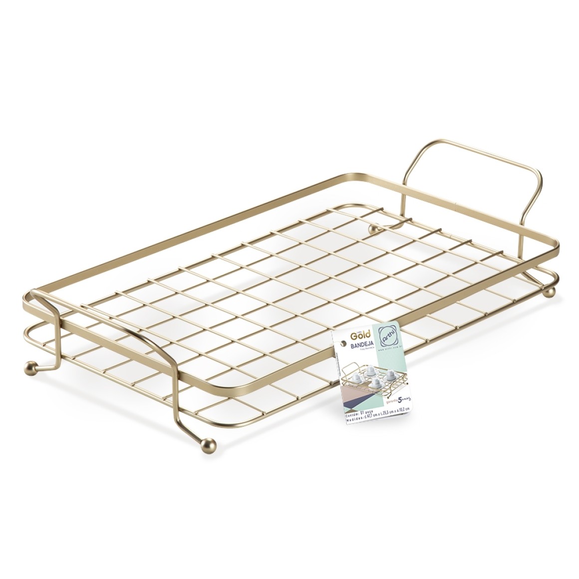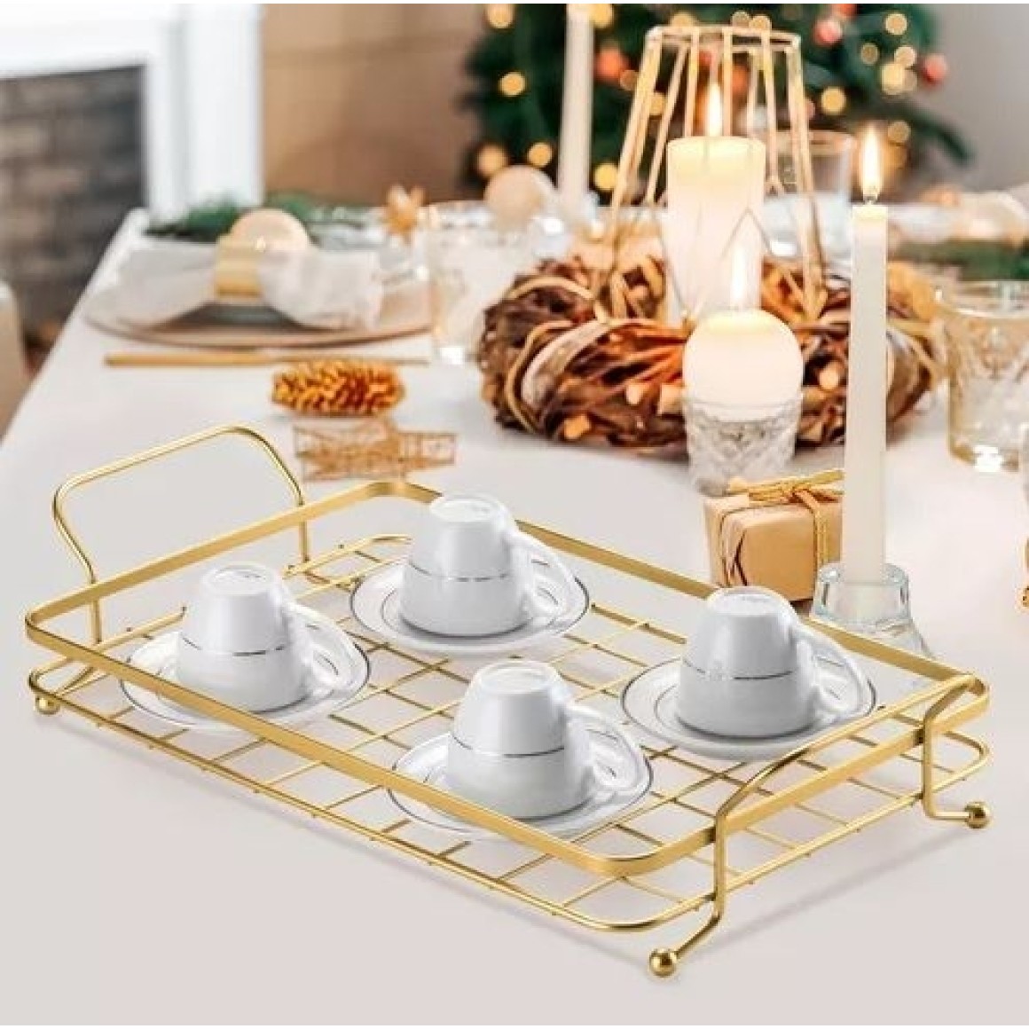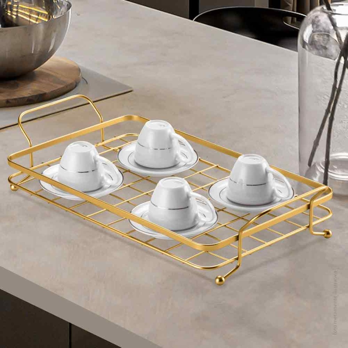 Deixe seu ambiente ainda mais organizado e decorado com a bandeja dourada, ideal para diversas funções, como organizar xícaras, copos, cafeteira ou revistas.