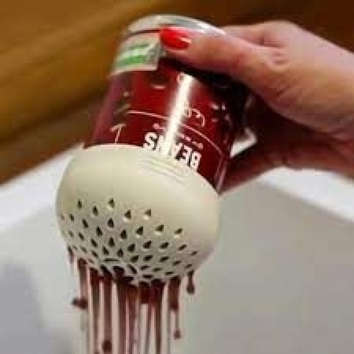 Escorrer a água da lata de conserva, vidro ou copos, agora ficou mais prático, e sem risco de disperdicio, ou se machucar na abertura das latas.