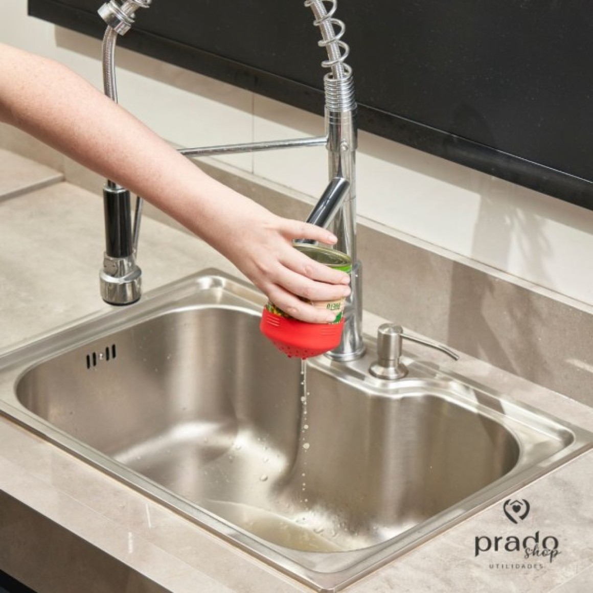Para usar é bem fácil: Basta abrir a lata/vidro, encaixar o escorredor e virar para escorrer todo o liquido. Ele também pode ser usado, como ralo na pia.
